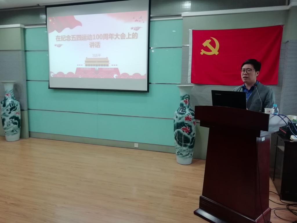 56日,纺织服装学院党委组织入党积极分子在学院A103会议室专题学习习近平总书记在纪念五四运动100周年大会上的重要讲话精神。院党委副书记周云龙解读了习近平总书记重要讲话精神。