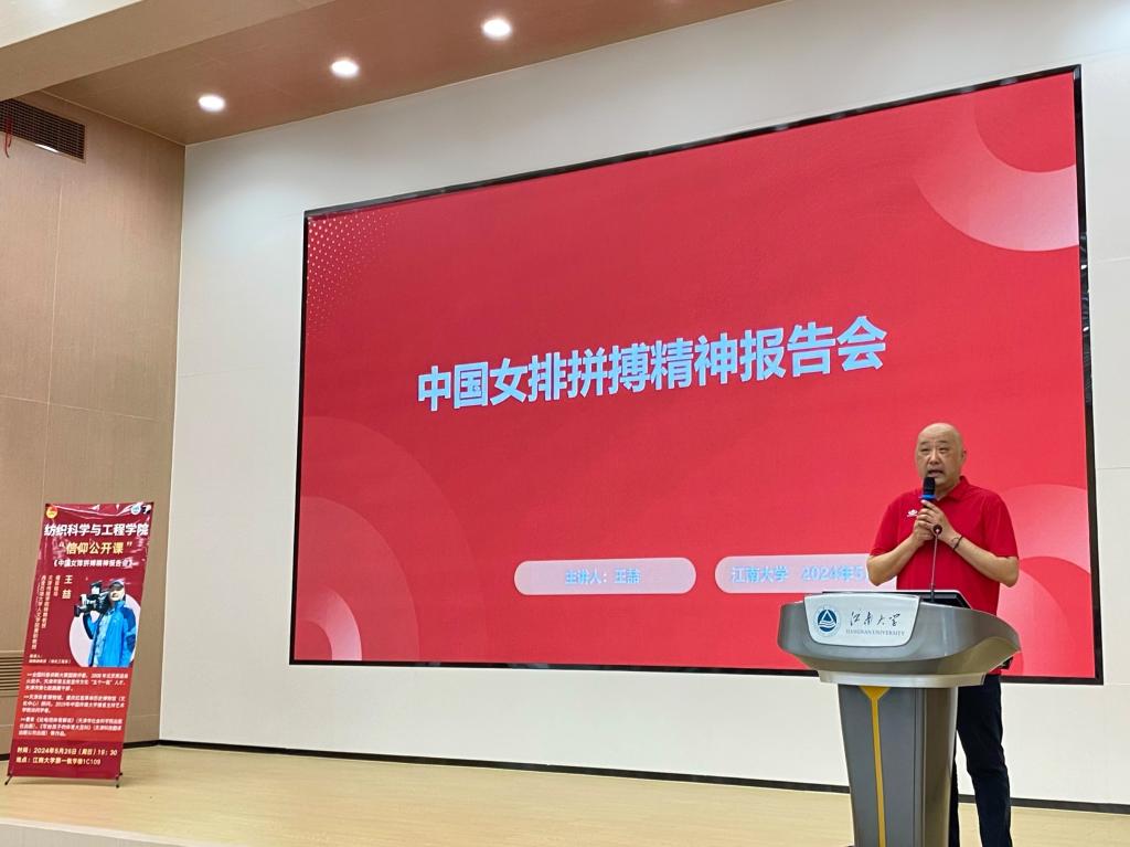 5月26日下午,bwin必赢中国官网于第一教学楼1C109开展“中国女排拼搏精神”信仰公开课,天津传媒学院特聘教授、著名播音指导王喆受邀担任主讲嘉宾,学院学工办主任兼分团委书记陈裕、轻化工程系老师顾鹏,以及江南大学百余名学生参加活动。此次活动是学院第十届“青年马克思主义者”培养工程培训环节之一。