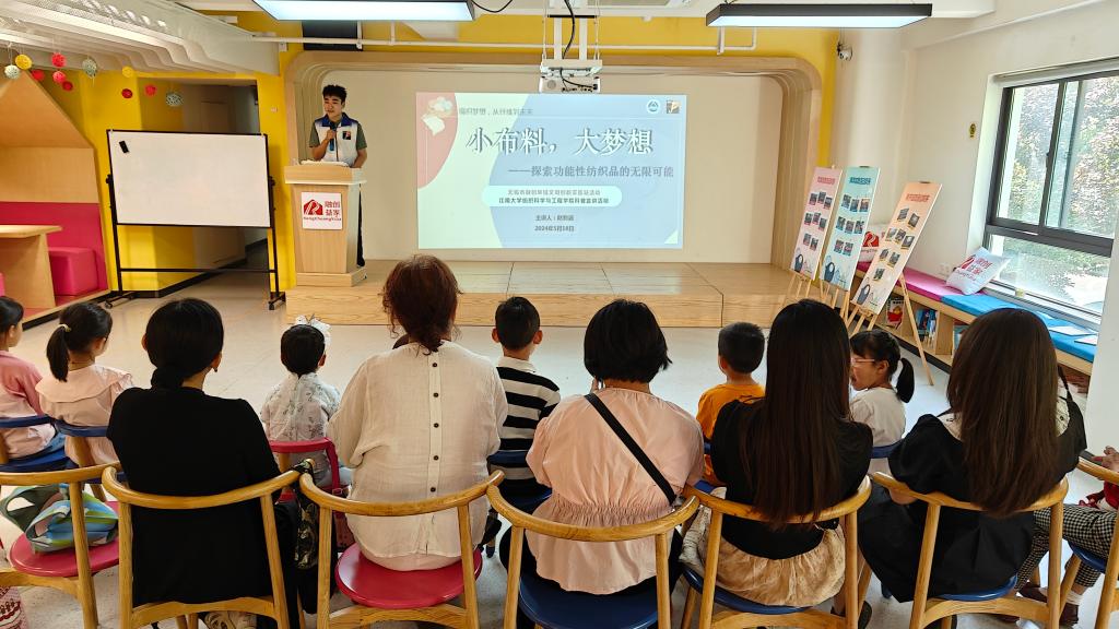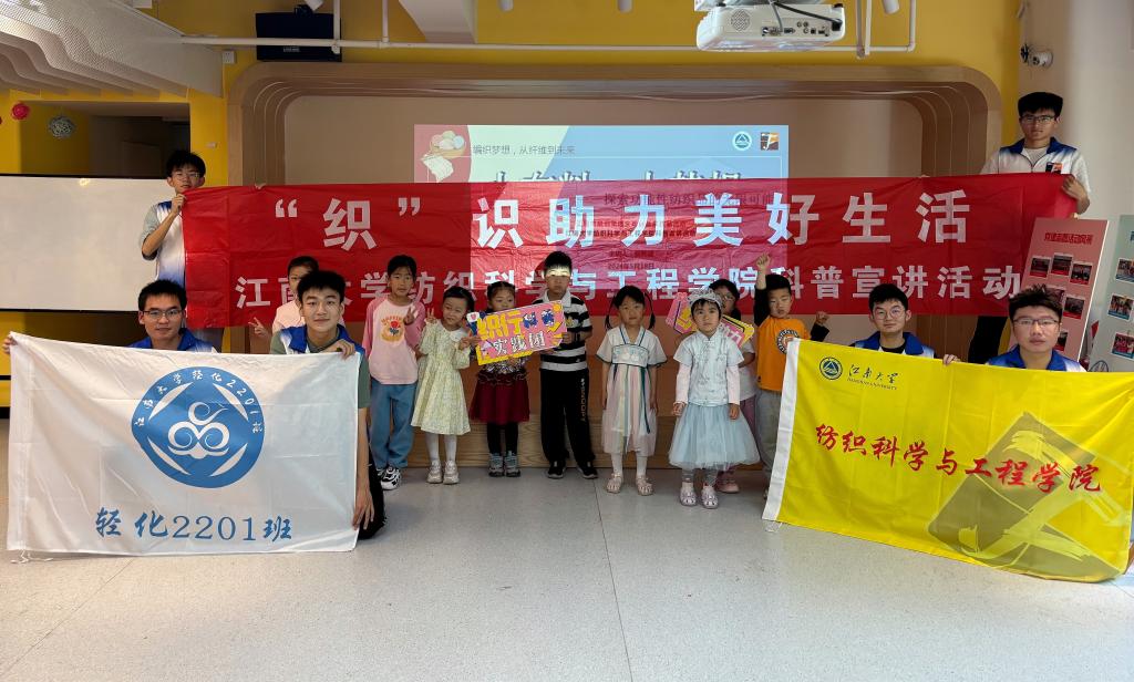 5月18日,bwin必赢中国官网轻化2201班团支部来到融创荣域文明创新实践站,开展纺织科学知识科普,为这里一年级的小朋友们带来一场以功能性纺织品为主的科普宣讲活动。团支部的团员青年把纺织科学知识与小朋友们的日常生活相结合,助力儿童科技启蒙,传递爱国情怀,激发儿童对纺织科学知识的兴趣。