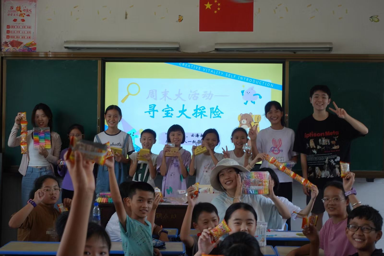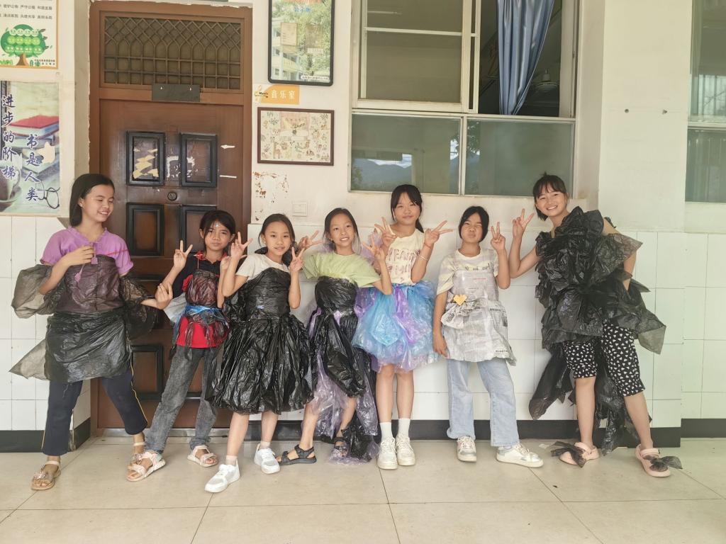 支教团成员结合所学专业积极创新,举办了“寻宝大探险”和“变废为宝创意时装秀”等活动。“寻宝大探险” 以“寻宝”为题,在妙趣横生的游戏中增强学生的团队协作能力、创造力和逻辑思维能力;“变废为宝创意时装秀”以闲置、废弃物品为原材料,创造出具有个人特色的服装,增强学生的团队协作能力、创造力和环保意识。