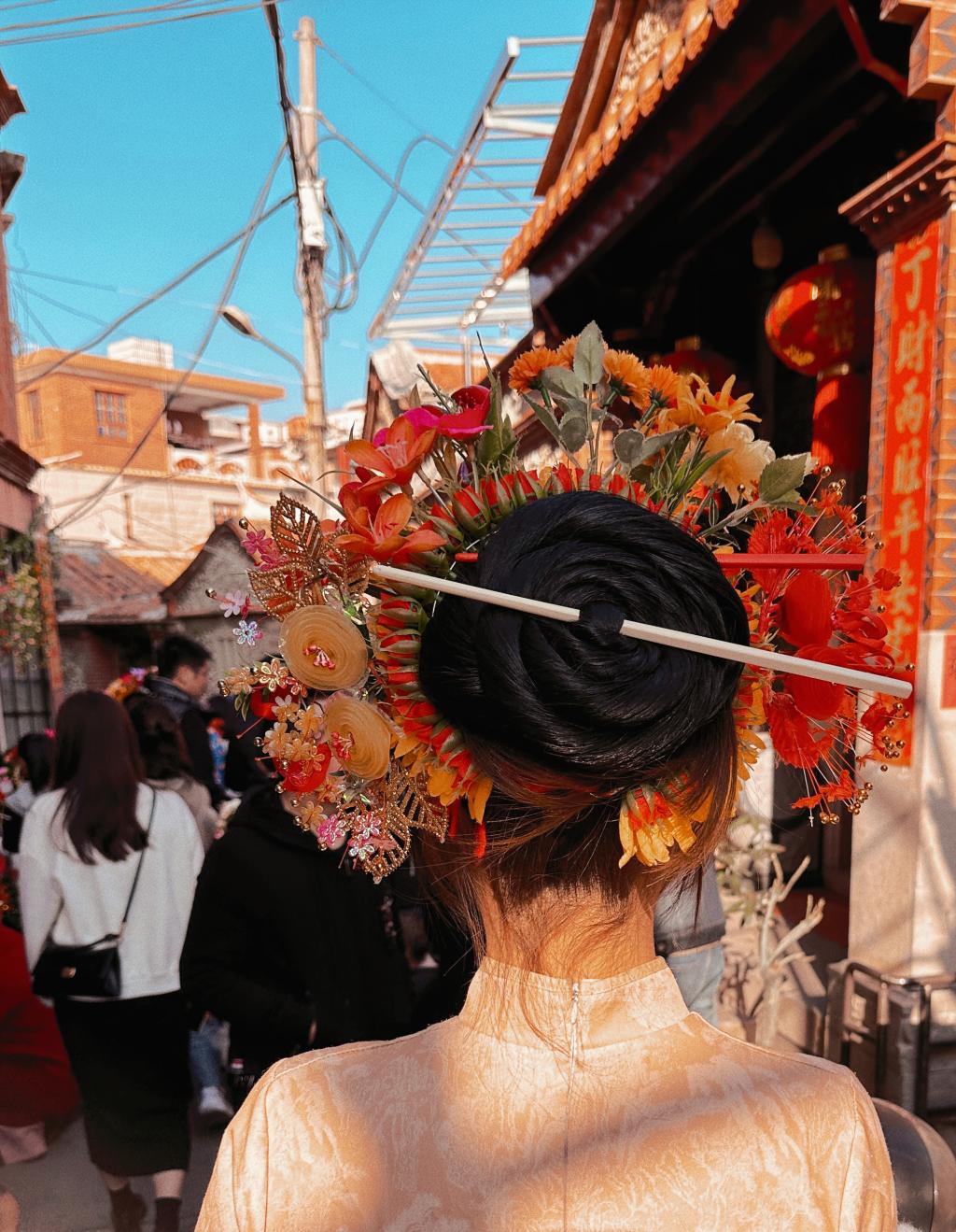 地方特色千秋韵,非遗传承万代功。在非遗文化的调研中,纺织2205班的龚李文淇同学前往云南省保山市板桥镇青龙街,探访当地的非遗文化,感受将传统文化与旅游业结合所带来的经济效益。纺织2203班的李诺琦同学则前往福建泉州市蟳埔村,深入研究“簪花围”这一非物质文化遗产,从简朴的装束中感悟其中寄托的祝福,感受中华文化的生命力与希望。