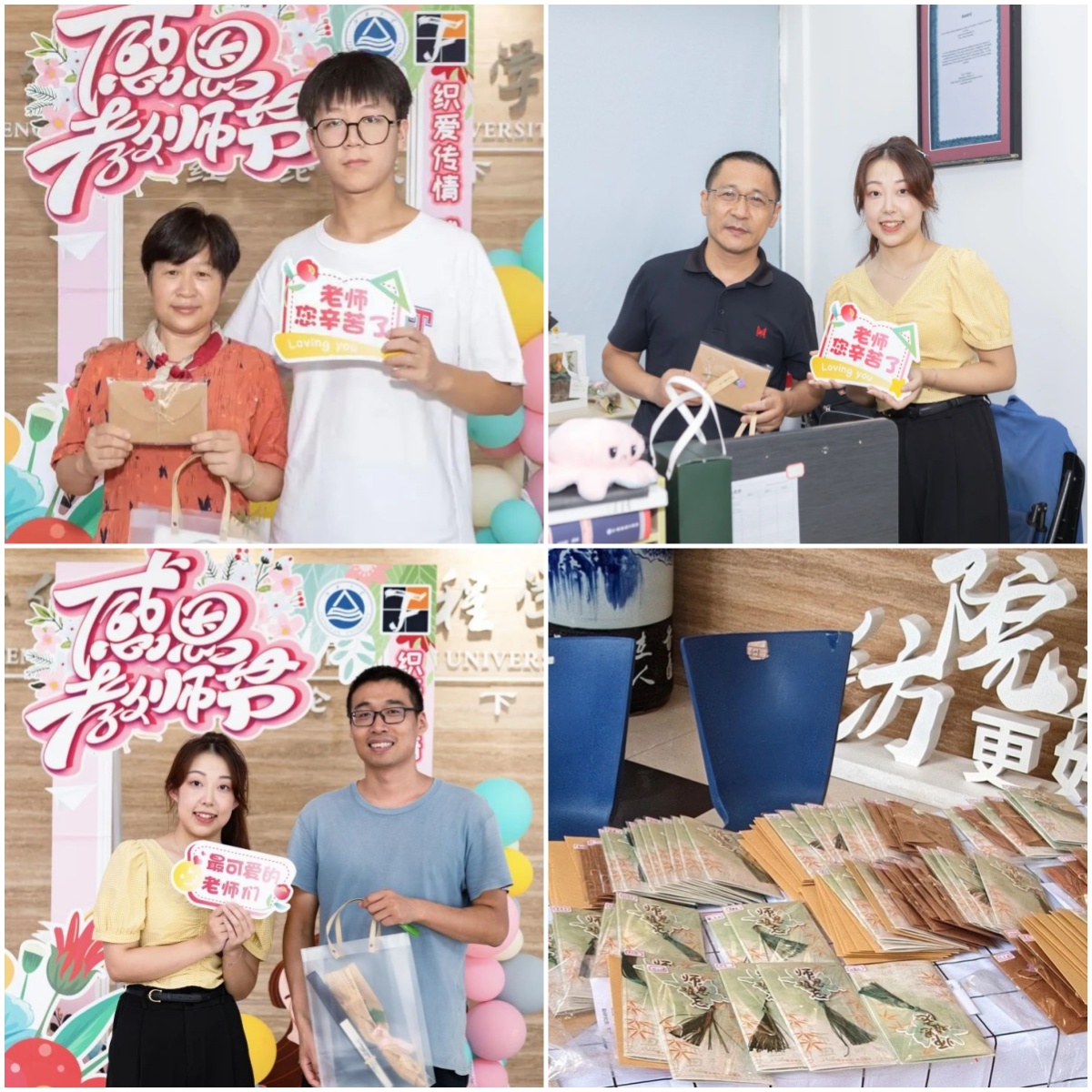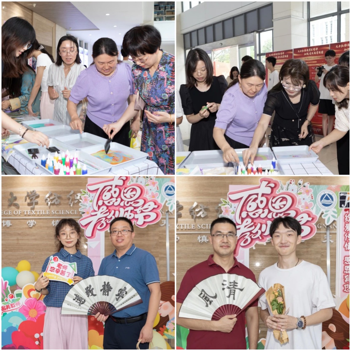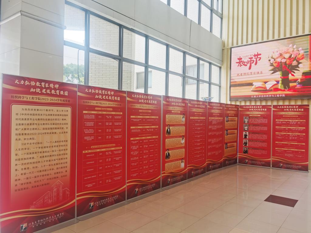 高素质的教师队伍是学院培养一流纺织科技创新人才的最大底气和根本依靠。学院分工会、办公室、分团委和学生会等共同组织开展丰富多彩的教师节庆祝活动,让老师们在简朴而隆重的氛围中度过教师节。在教育、科技、人才一体化发展的新征程上,一代又一代教师必将薪火传承、践行教育家精神,一届又一届学子也将接续奋斗、挺膺担当,秉承“博学慎独、经纶天下”的院训精神,共同织就强国建设、民族复兴新锦绣。