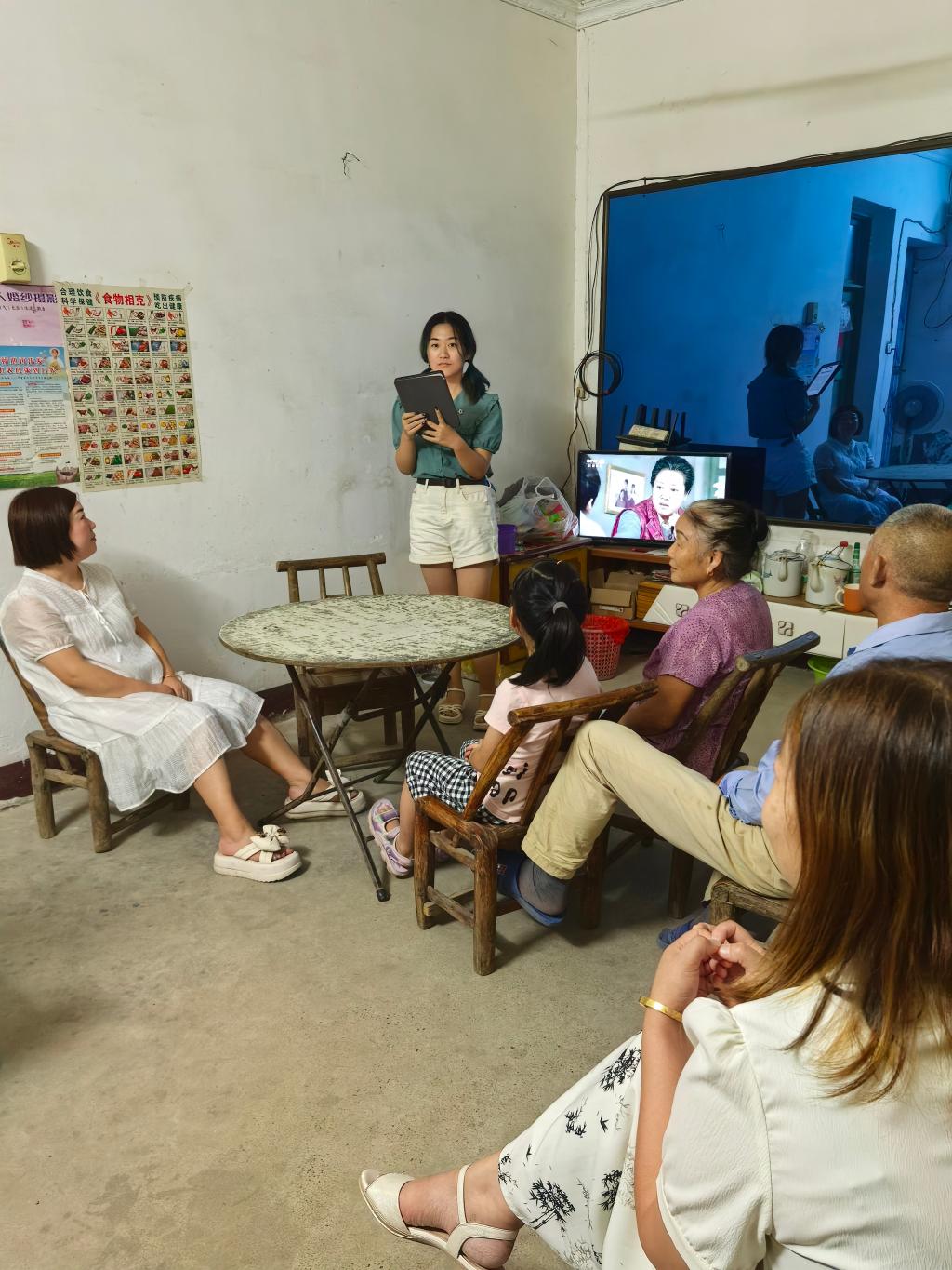 实践成员张梓皓在河北省石家庄市无极县郝庄村西中郝庄村支部居委会面向村民以“乡村的新变化”为主题,讲解了中国特色反贫困理论和伟大脱贫攻坚精神,在与村民代表的沟通中深切感受到家乡的变化,激发为建设家乡的热情。实践队员宋雨虹于高淳古柏街道凤柏村进行了有关“乡村振兴”的主题宣讲,从“当下乡村振兴面临的困难与挑战”“如何落实新时代‘三农’工作”“青年人该如何发挥自身优势助力乡村振兴”三方面进行宣讲,宣讲内容深入浅出、通俗易懂,为乡村振兴注入了“文明力量”。