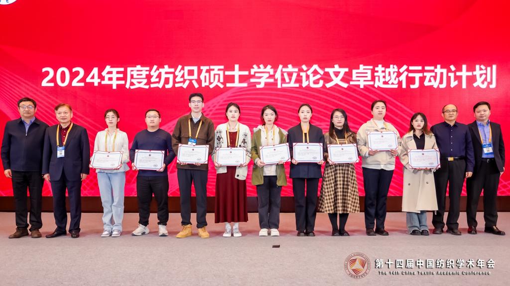 年会举行了颁奖仪式,以表彰2024年度在纺织科学领域作出突出贡献的卓越人才及优秀成果,江南大学织科学与工程学院张典堂研究员获评“中复神鹰”纺织青年科技奖,1篇博士论文入选纺织博士学位论文卓越行动计划,1篇硕士学位论文入选纺织硕士学位论文卓越行动计划,1篇学术论文获评第25届中国纺织工程学会陈维稷优秀论文。