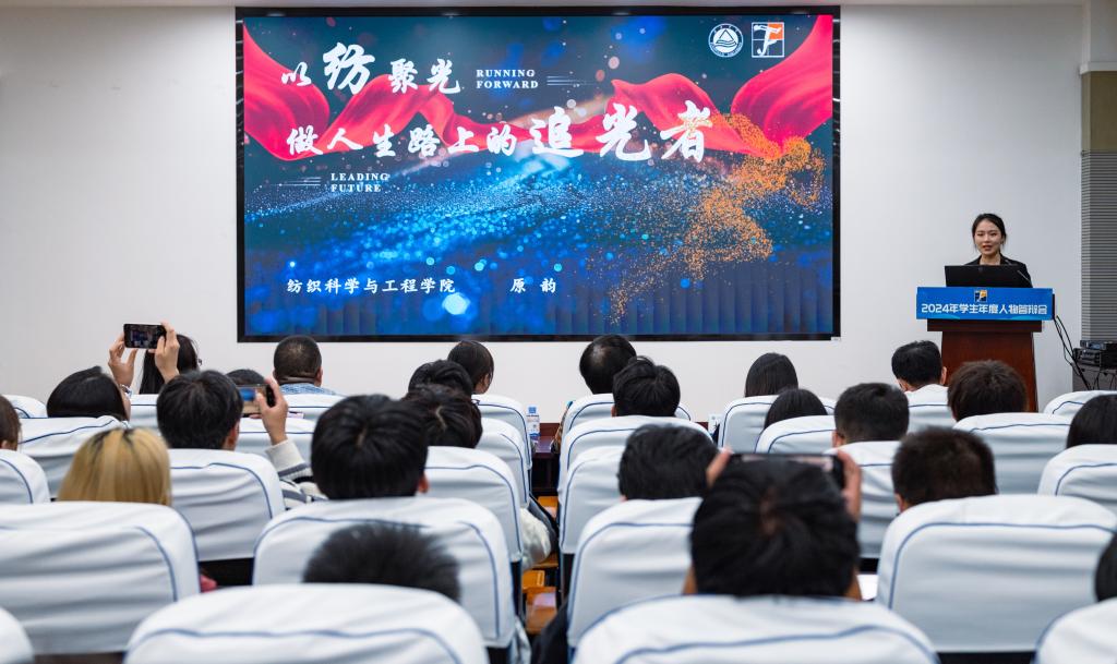 活动伊始,杨莉勤介绍了学生年度人物评选基本情况,祝愿答辨同学能展示出纺织青年拼搏进取、踔厉奋发的榜样风范和“奋楫笃行,履践致远”的精神风貌。她希望纺织学子以榜样为镜,不忘心中的志向与赤忱,以勤奋筑路,不畏险阻,用奋斗的脚步,书写青春答卷。