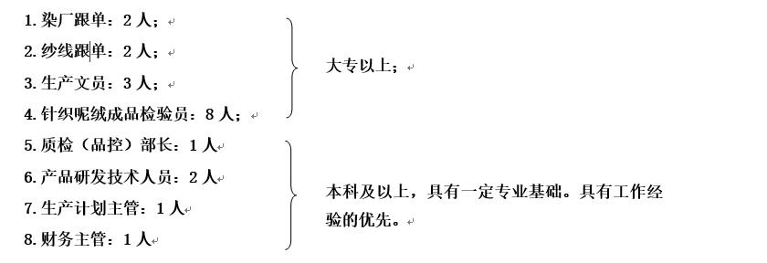 b. 质检部长、研发技术人员、生产计划主管、财务主管:年薪8-10万。